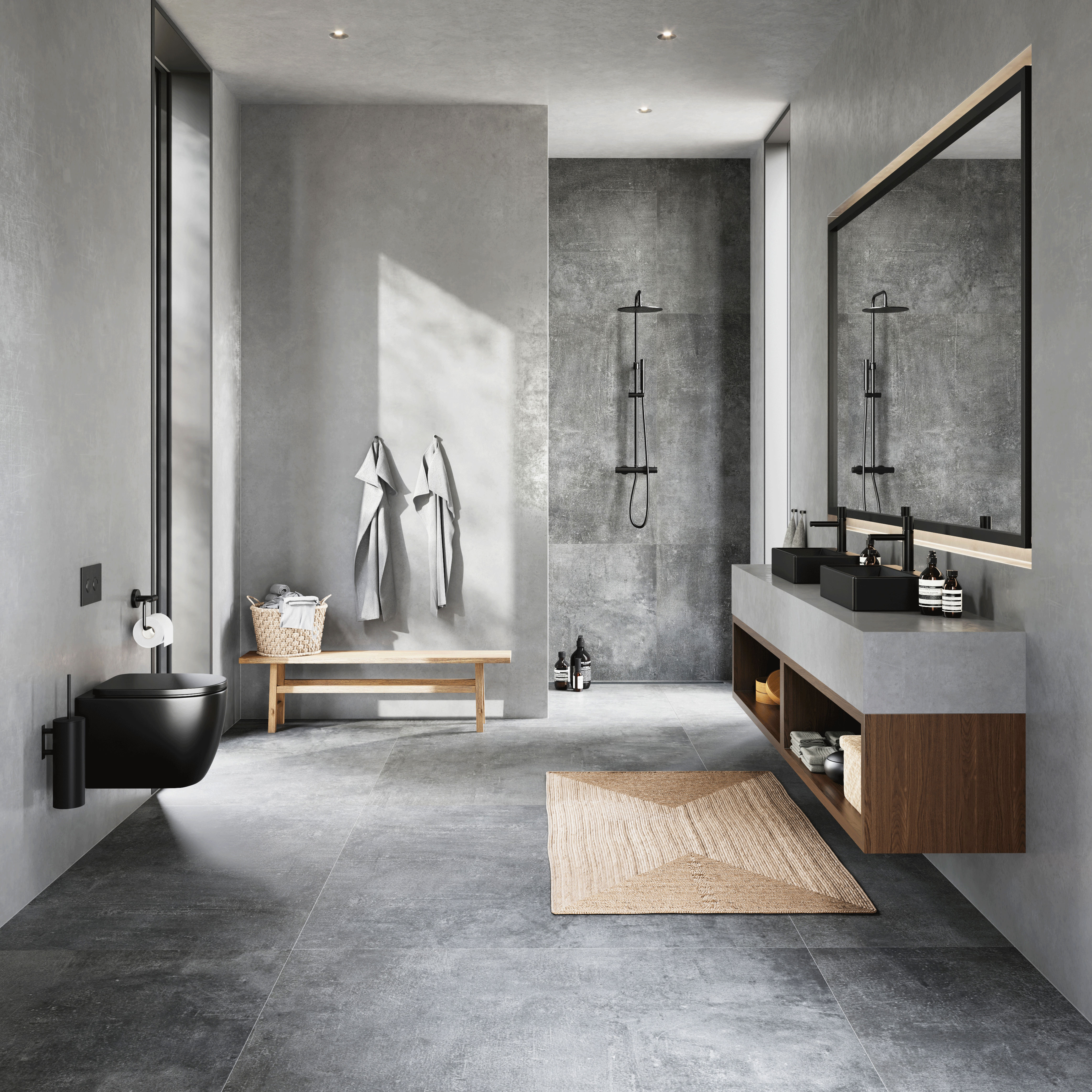 Fremstillet i rustfrit stål med mat sort pulverlakeret overflade behandling.