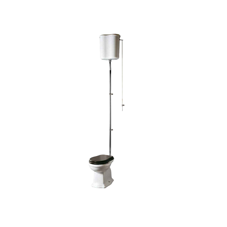 Cisternen er konstrueret til ét effektivt skyl (6 liter) og betjenes med en karakteristisk træk-kæde, der hænger elegant ned fra siden – en autentisk detalje, som fuldender udtrykket. Forbindelsesrøret mellem cisterne og skål er udført i Ø30 mm forkromet finish, så det matcher stilen i netop dit badeværelse.
