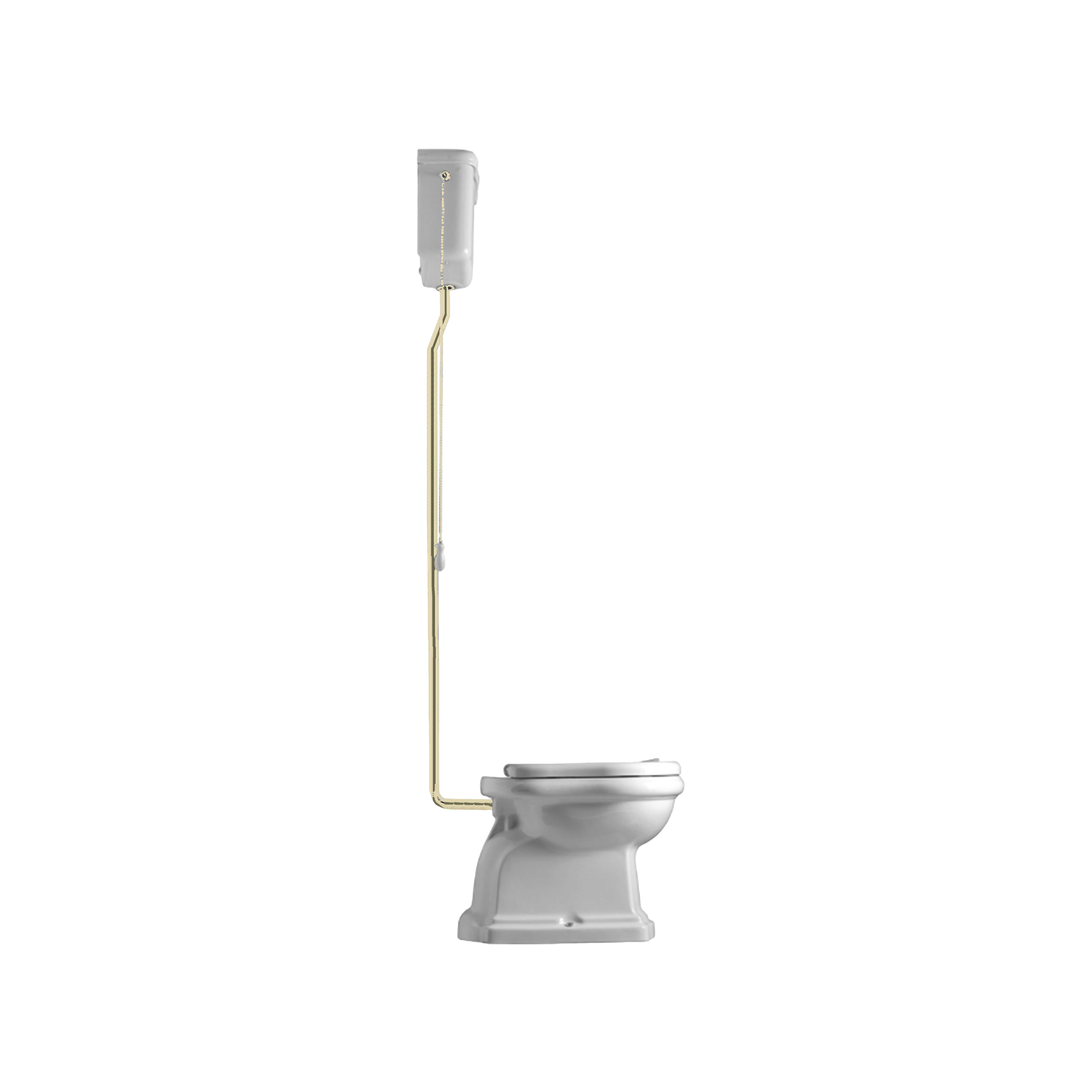 Retro High toilet m/S-lås, Hvid m/messing rør