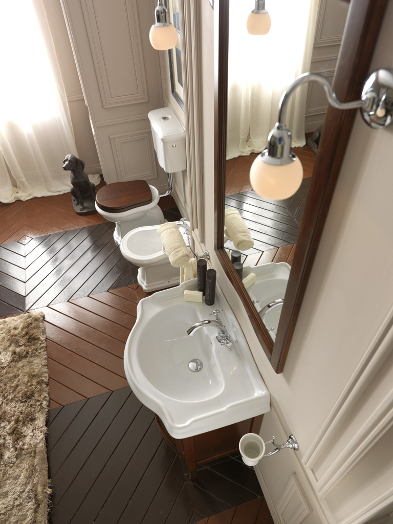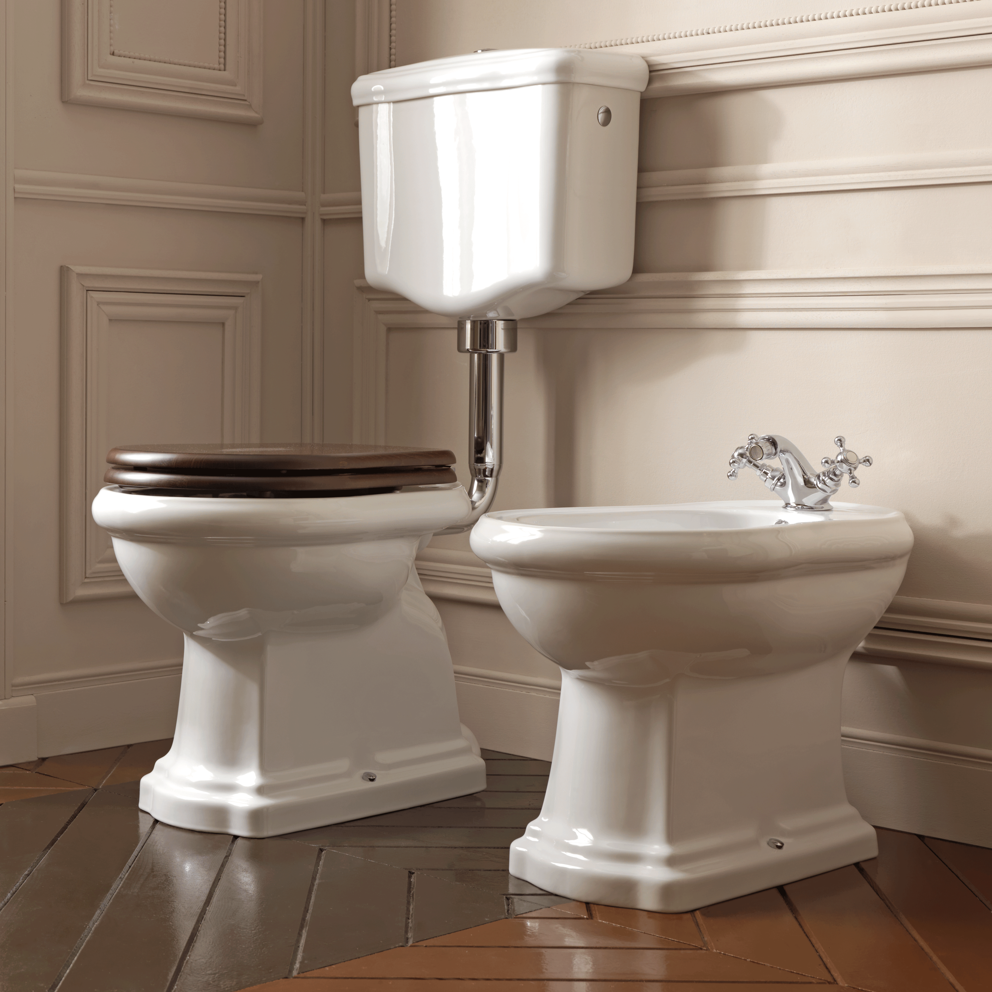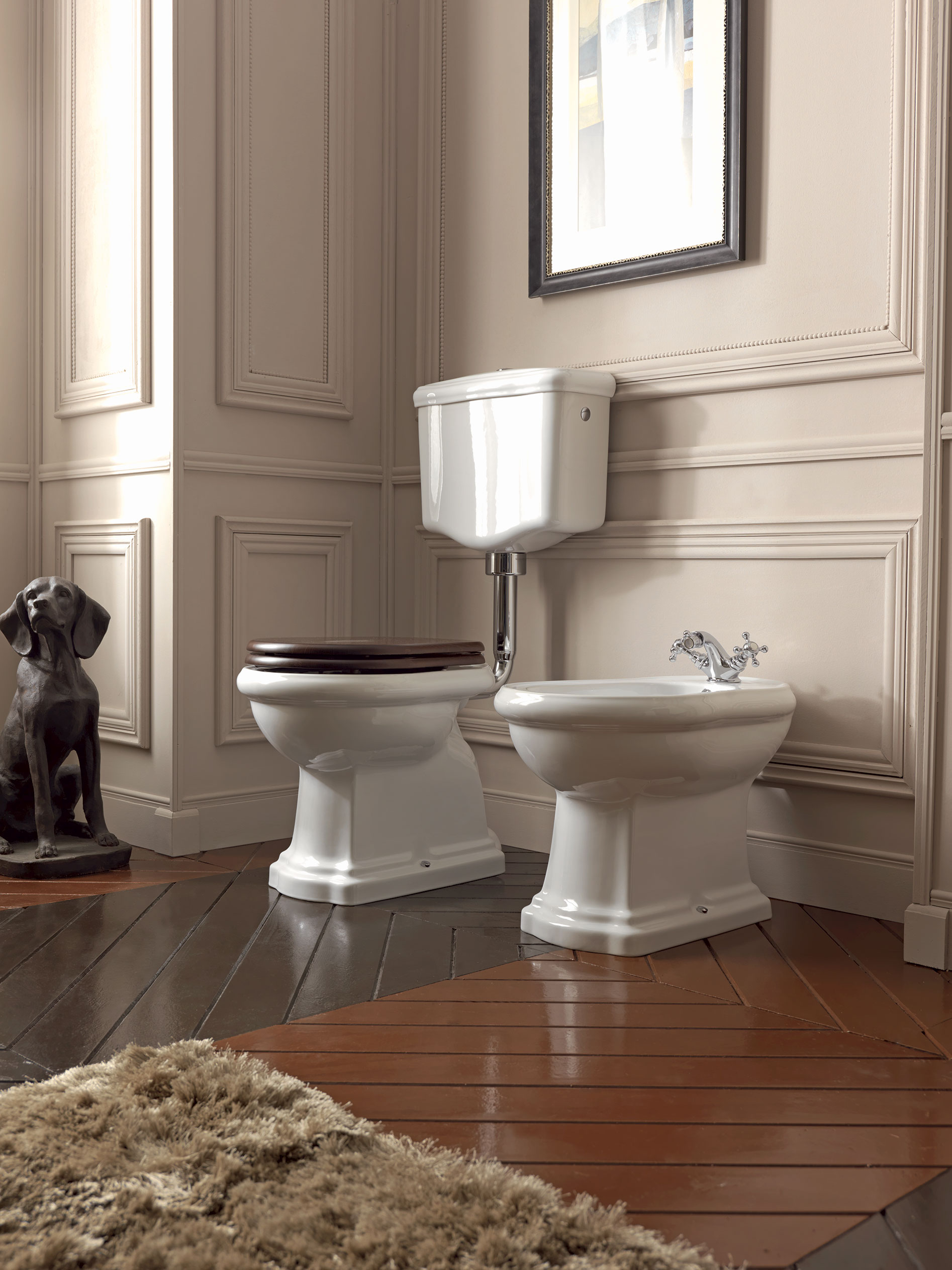 Toilettet har en afrundet og ergonomisk form, som giver en retrogenoplivning af et gammeldags badeværelse. Ligesom cisternen er toiletskålen lavet af modstandsdygtigt, fint glaseret porcelæn, som er Made in Italy.
