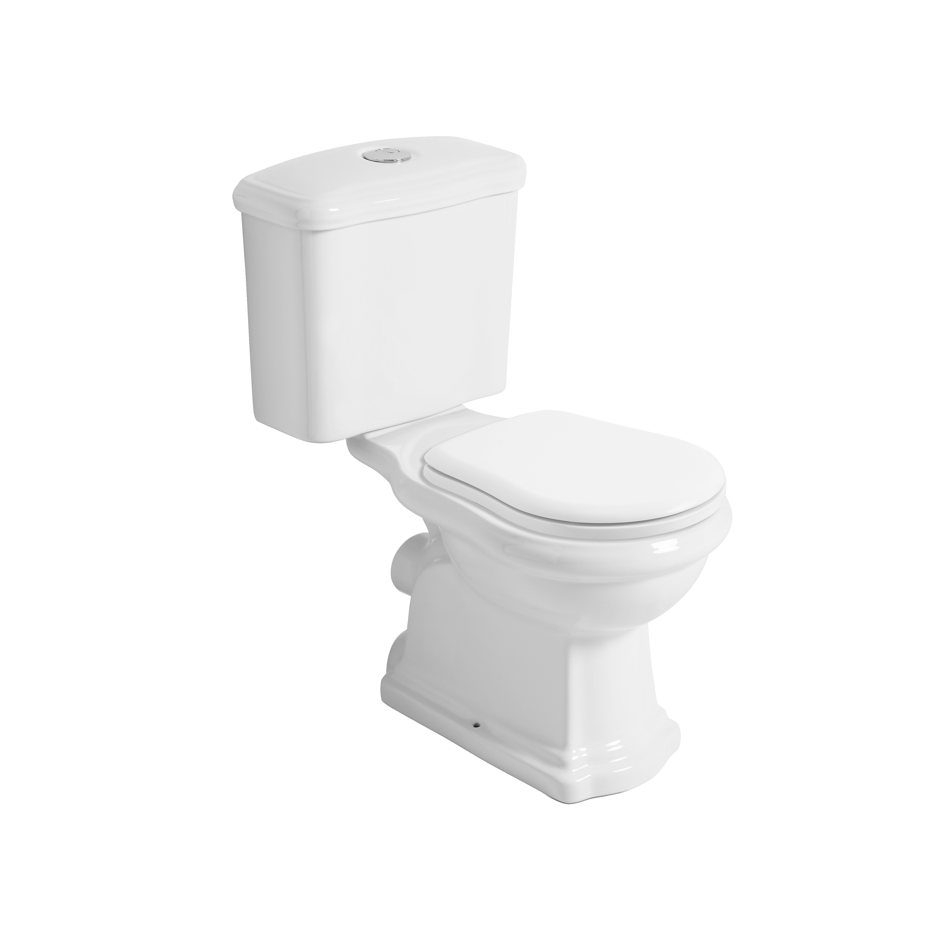 Retro Monoblocco er et markant toilet med rene, omsluttende linjer. Fremstillet af højkvalitets hvidt glasagtigt porcelæn, som sikrer en finish af høj kvalitet og langvarig holdbarhed. Toilettet har et lille fremspring bagpå, hvorpå cisternen skal installeres.