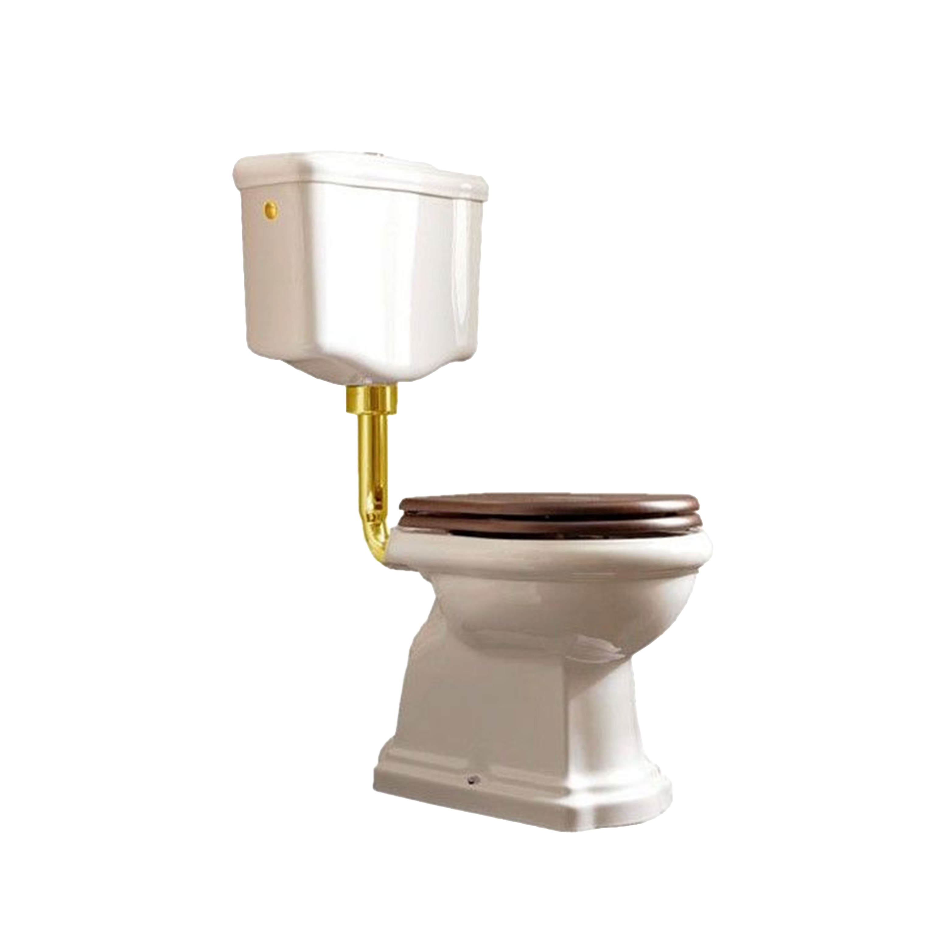 Retro-toilet med lavt placeret cisterne med ét skyl er et raffineret og unikt toilet, der vil forstærke dit badeværelse med skønhed og vil gøre det til et sted, der er ud over det sædvanlige. Den lavt monterede cisterne, som er afgørende for et effektiv skyl, ændrer badeværelsets klassiske stil til et ekstraordinært og trendy retro område. Cisternes placering er ideal hvor der er pladsproblemer. F.eks. i badeværelser med lavt til loftet, er lavt monteret cisterne den mest praktiske og komfortable løsning.