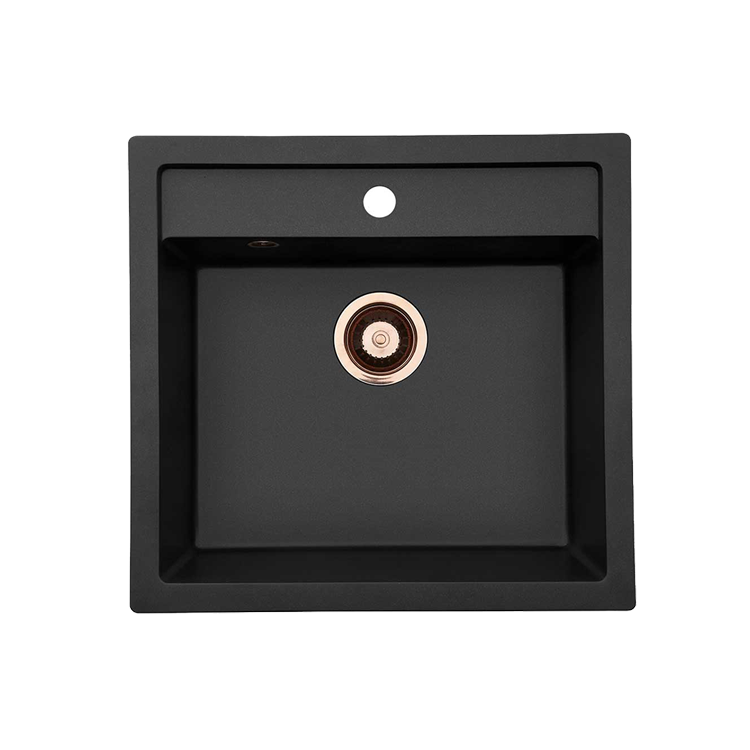 Jupiter 60 Komposit køkkenvask, Sort m/kobber afløb