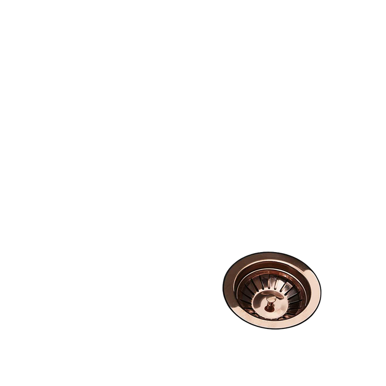 Vasken leveres med overløb og bundventil i PVD kobber.