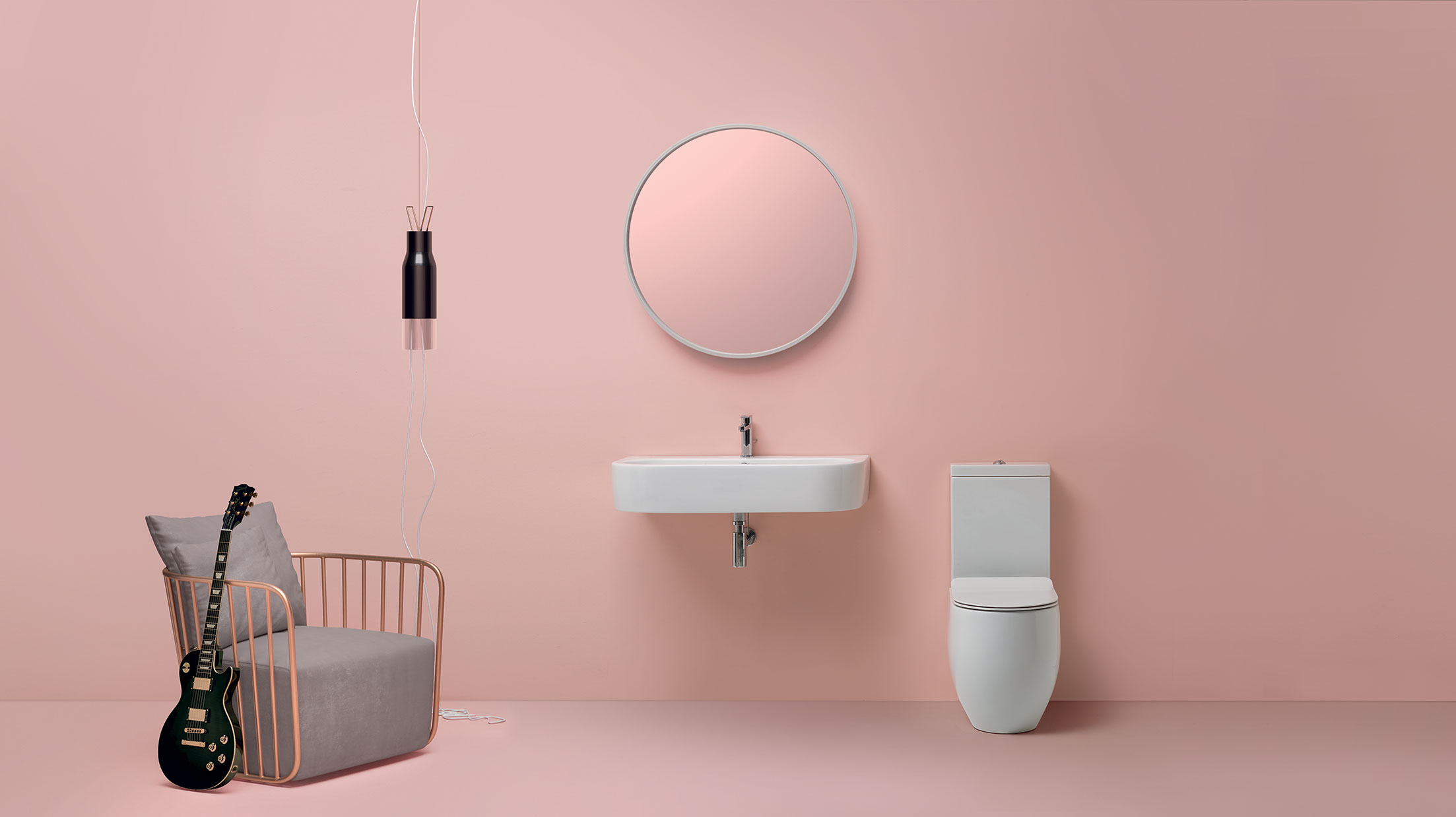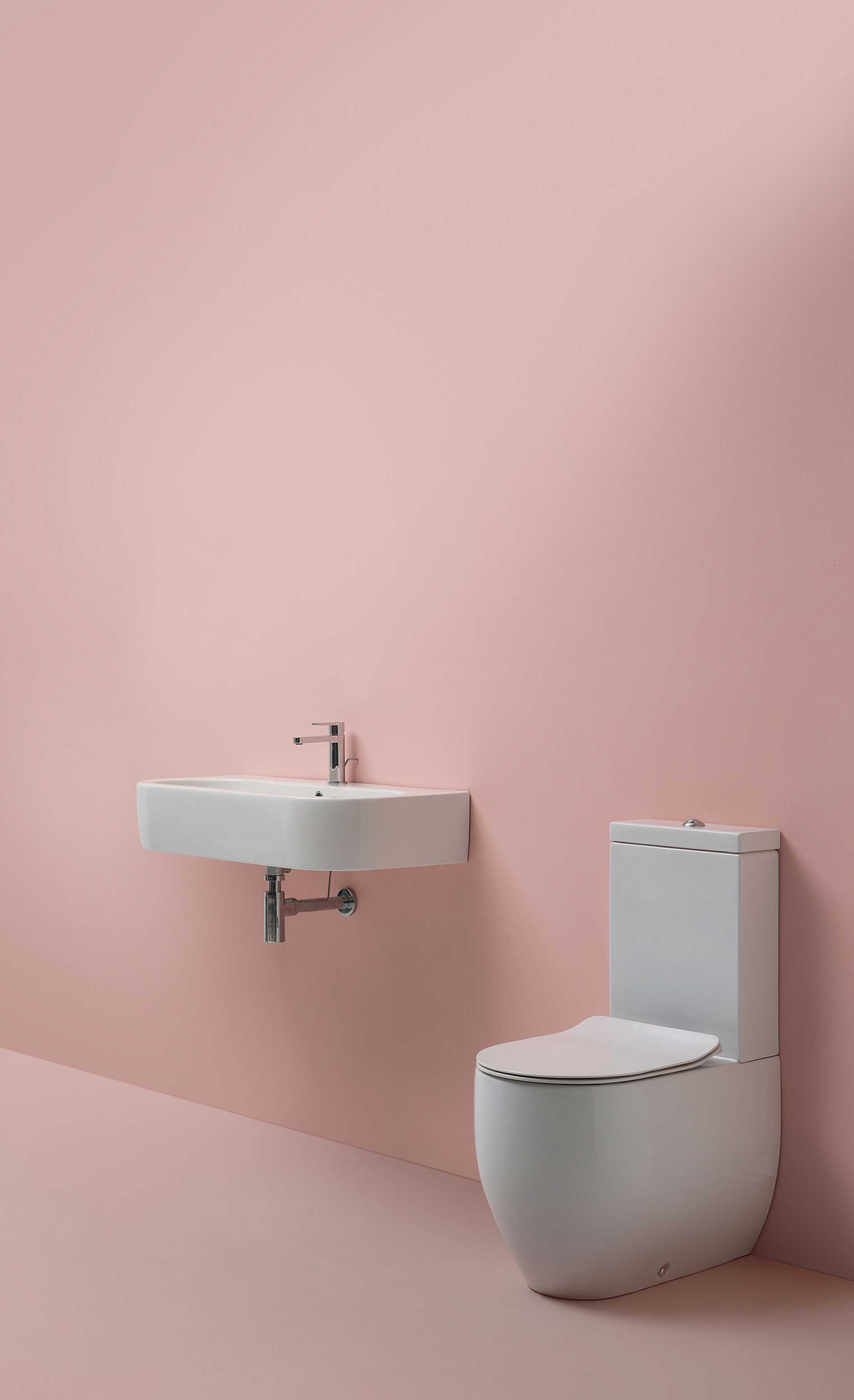 Toilettet er et Back To Wall, hvilket betyder, at det kan monteres helt op mod væggen, men kan også trækkes optil ca. 10 frem fra væggen.