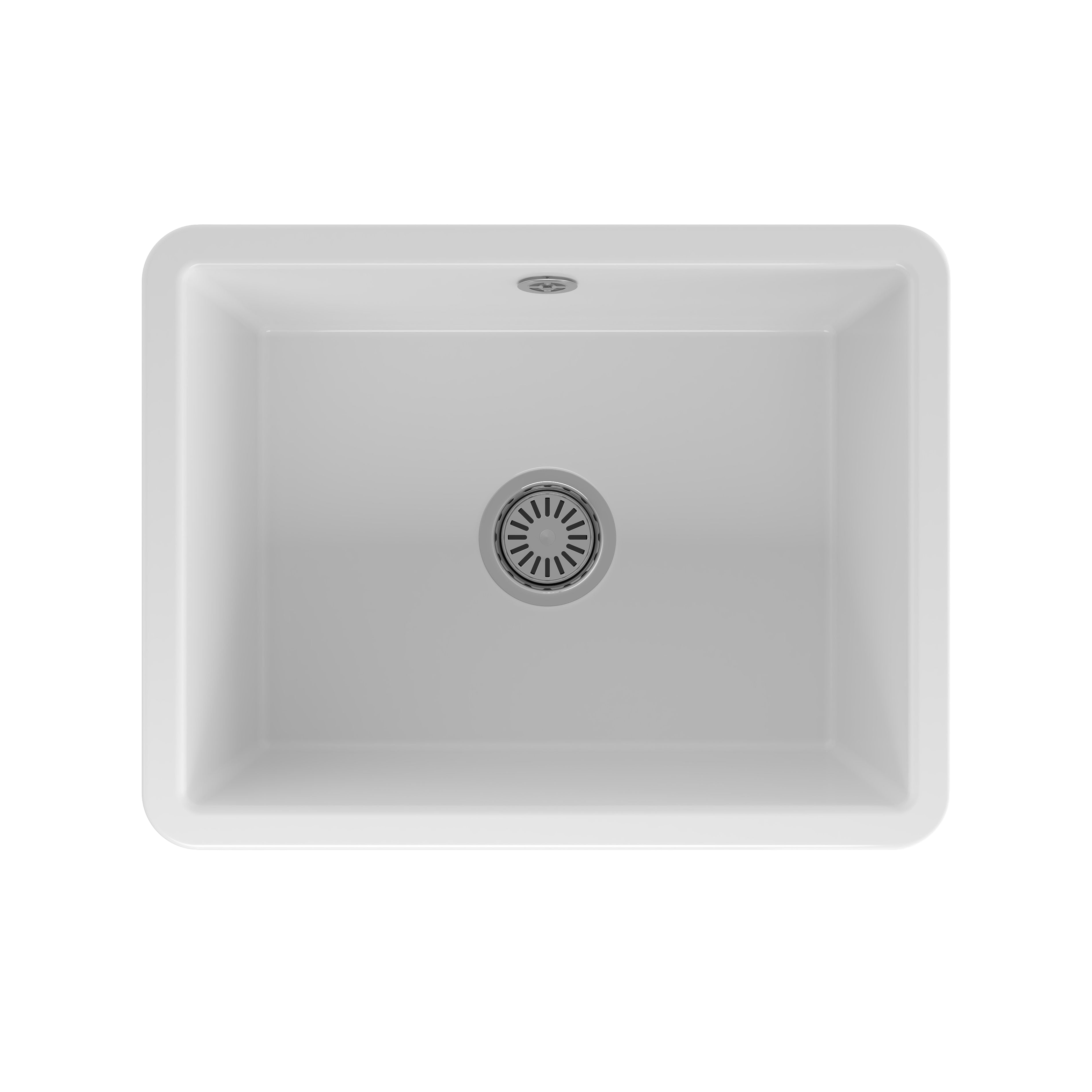 Mataro II keramik køkkenvask, Hvid m/krom afløb