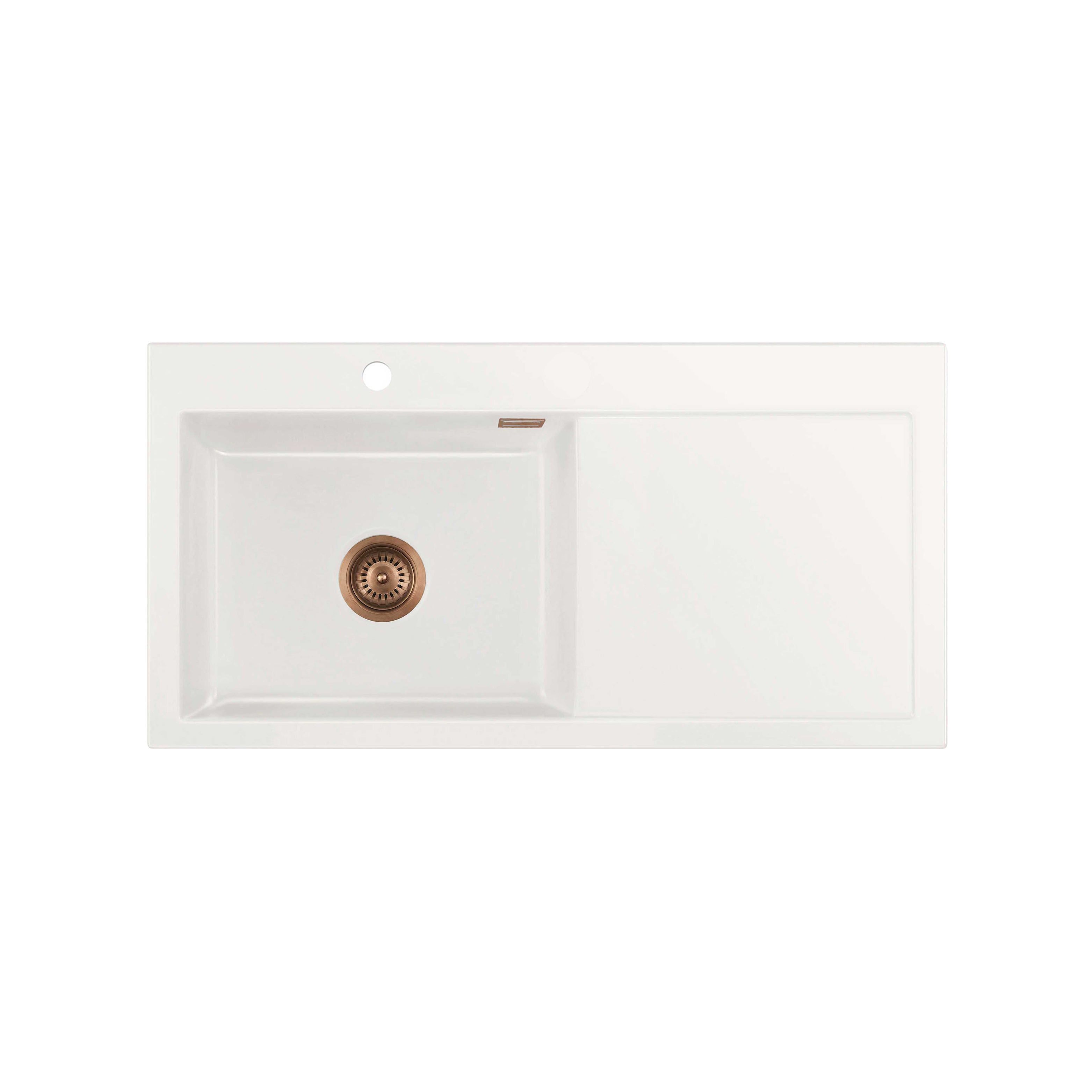 Mera 100 SL keramik køkkenvask m/bakke, Hvid m/kobber afløb