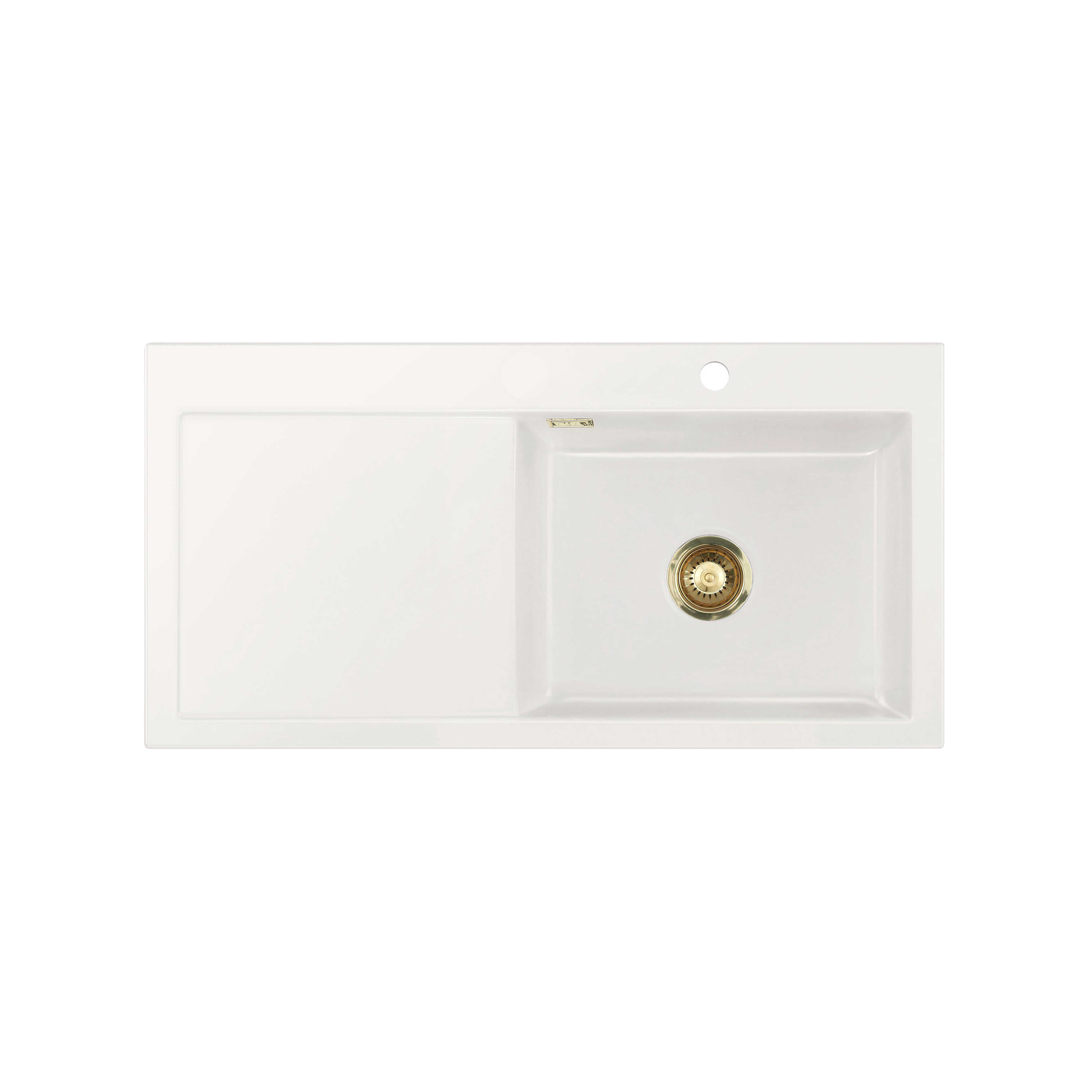 Mera 100 SL keramik køkkenvask m/bakke, Hvid m/messing afløb