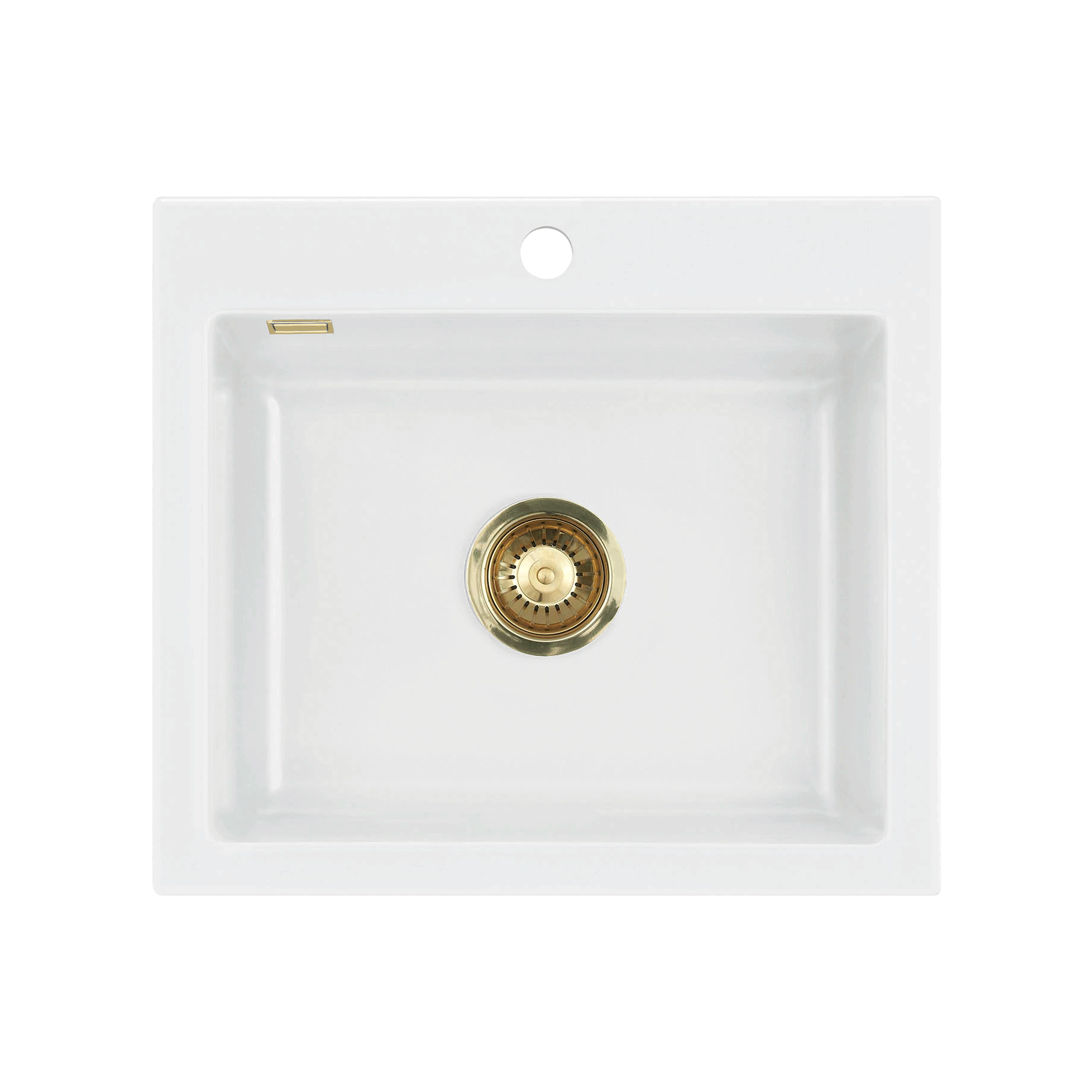 Mera 57 keramik køkkenvask, Hvid m/messing afløb