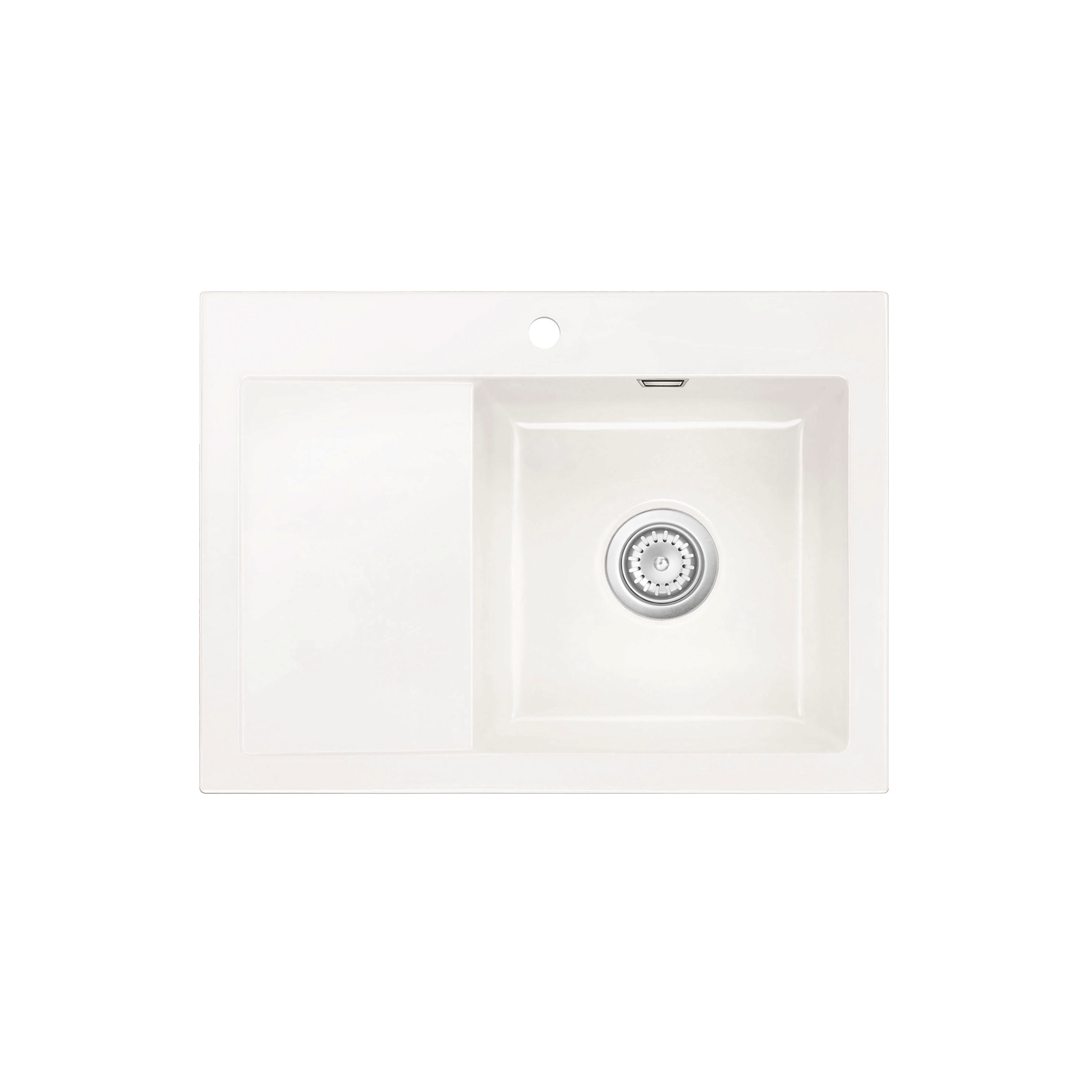 Mera 70 keramik køkkenvask m/bakke, Hvid m/krom afløb