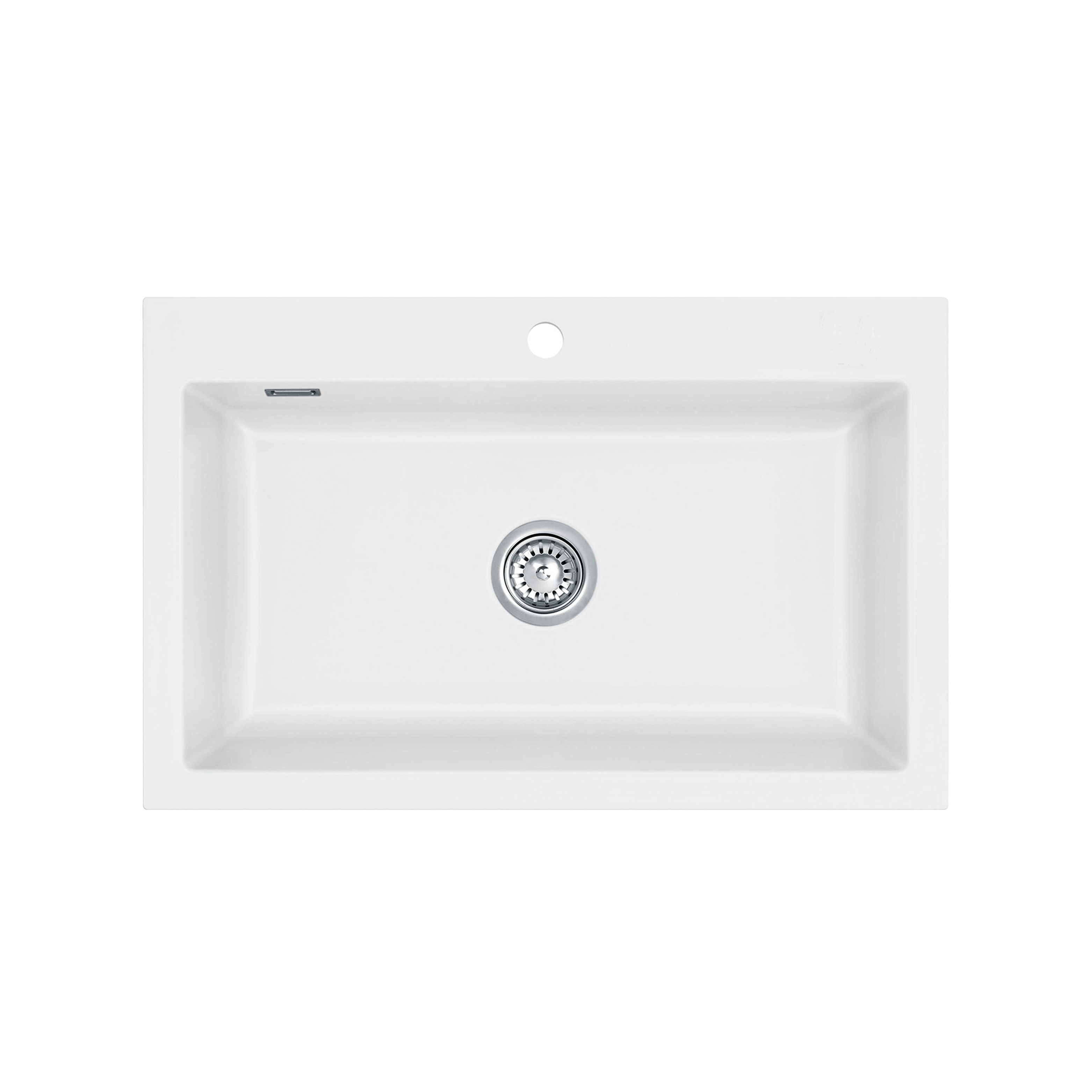 Mera 80 keramik køkkenvask, Mathvid m/krom afløb