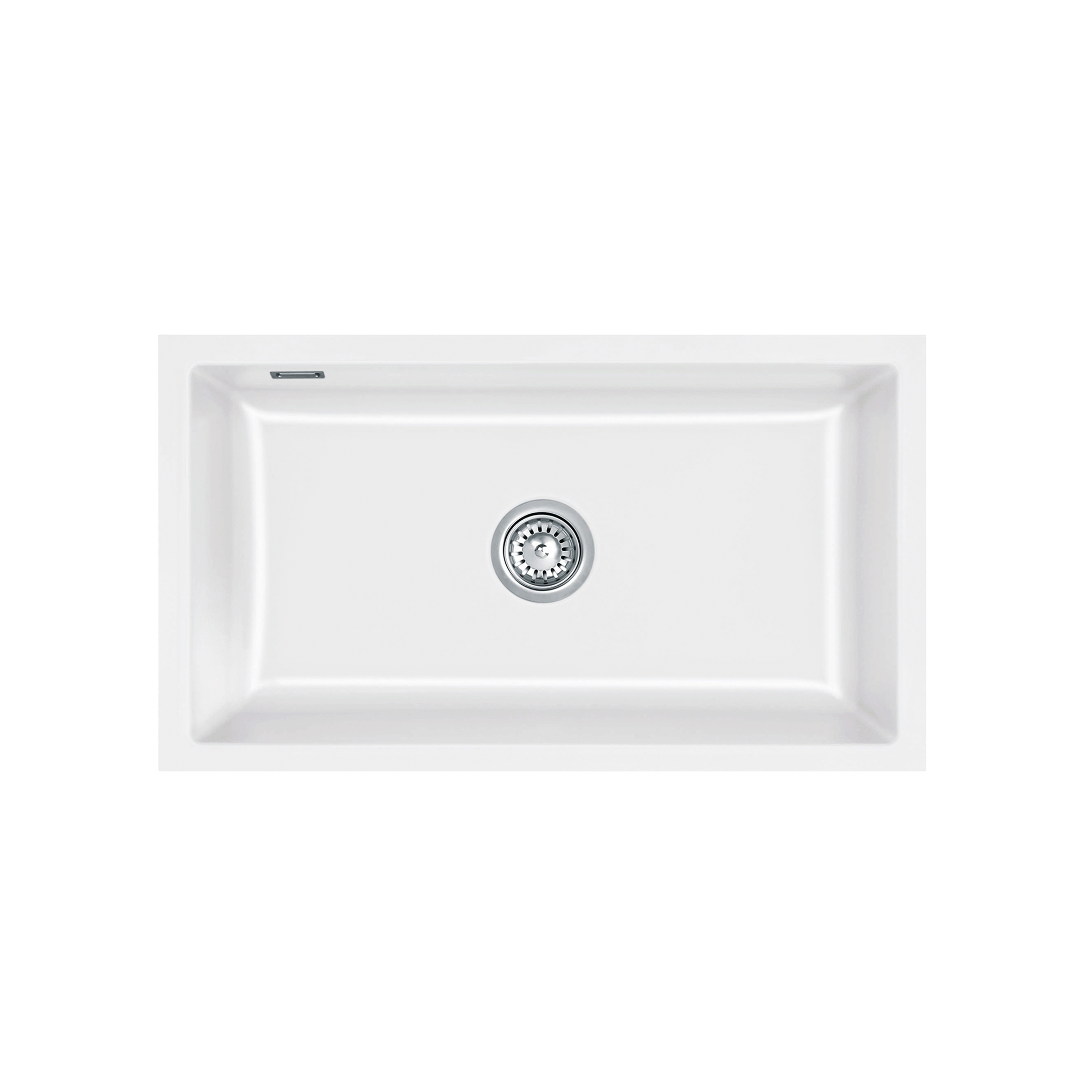 Mera 80 U keramik køkkenvask, Hvid m/krom afløb