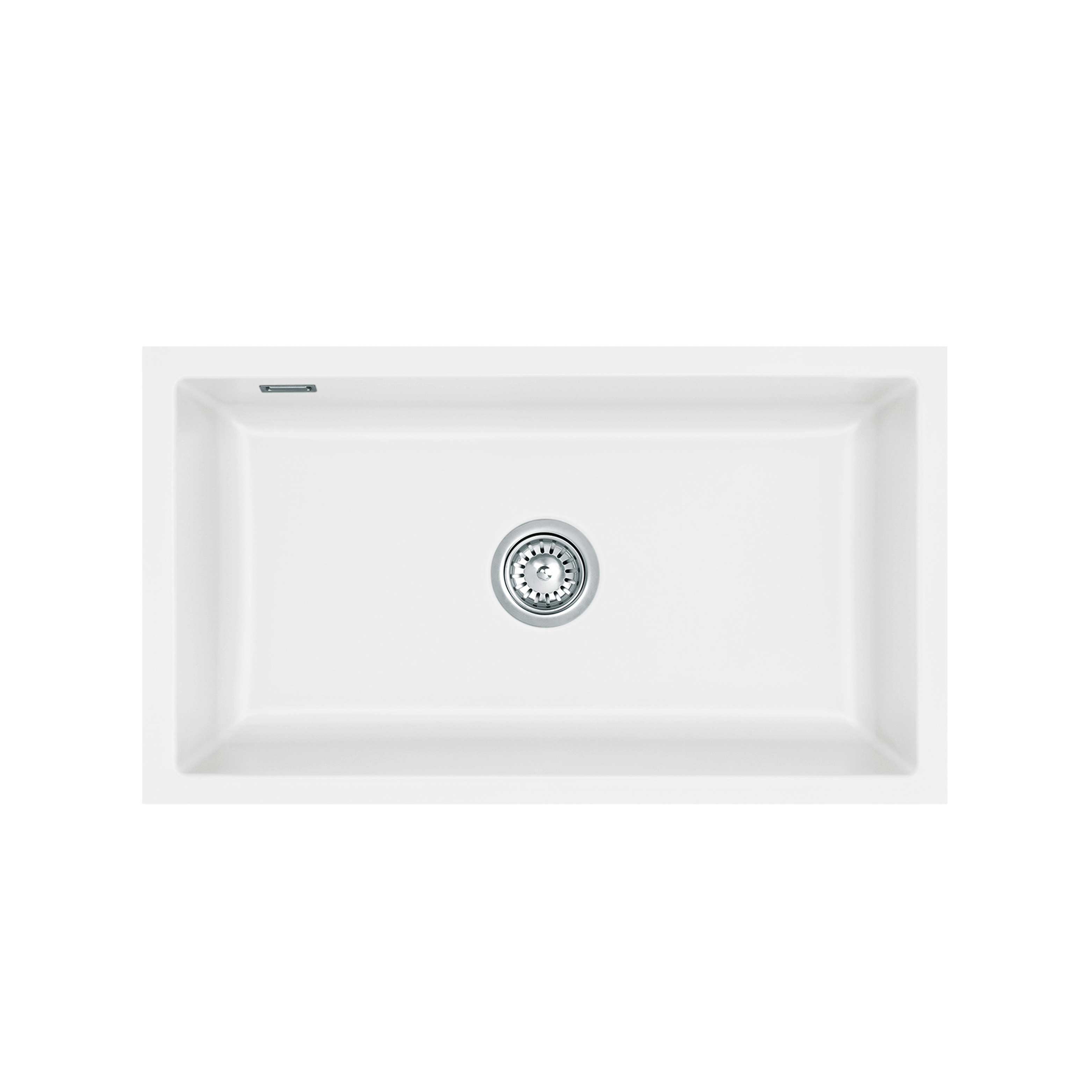 Mera 80 U keramik køkkenvask, Mathvid m/krom afløb