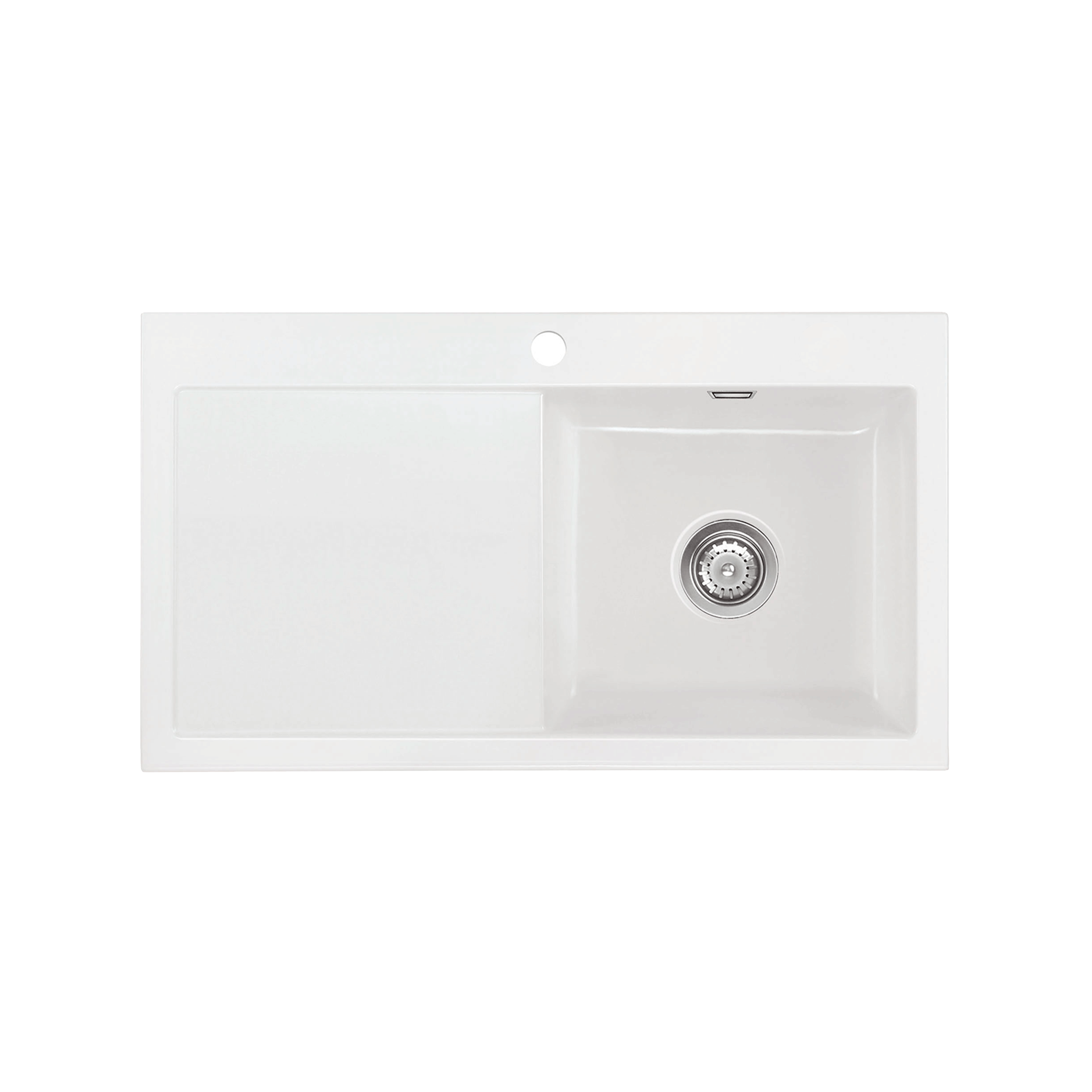 Mera 90 keramik køkkenvask m/bakke, Hvid m/krom afløb