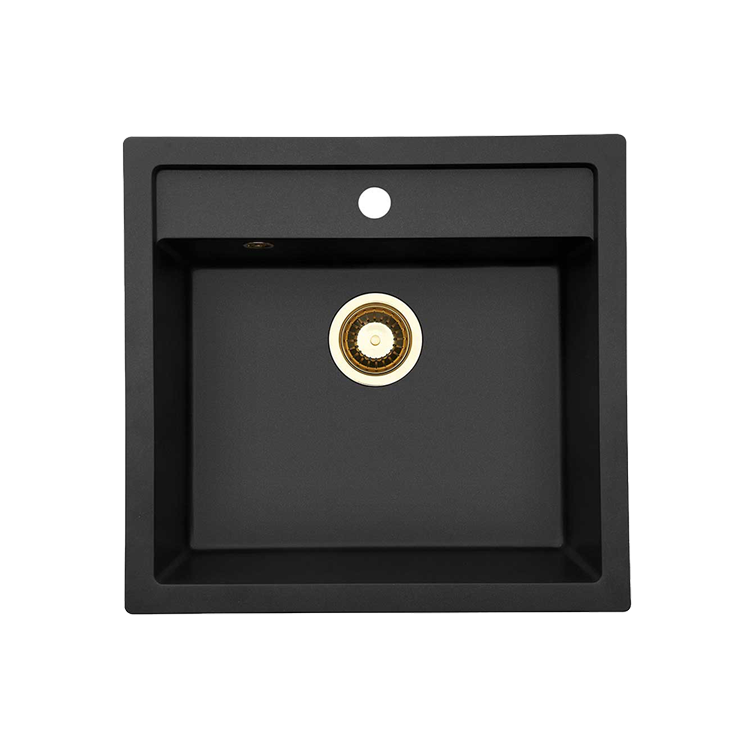 Jupiter 60 Komposit køkkenvask, Sort m/PVD Messing afløb