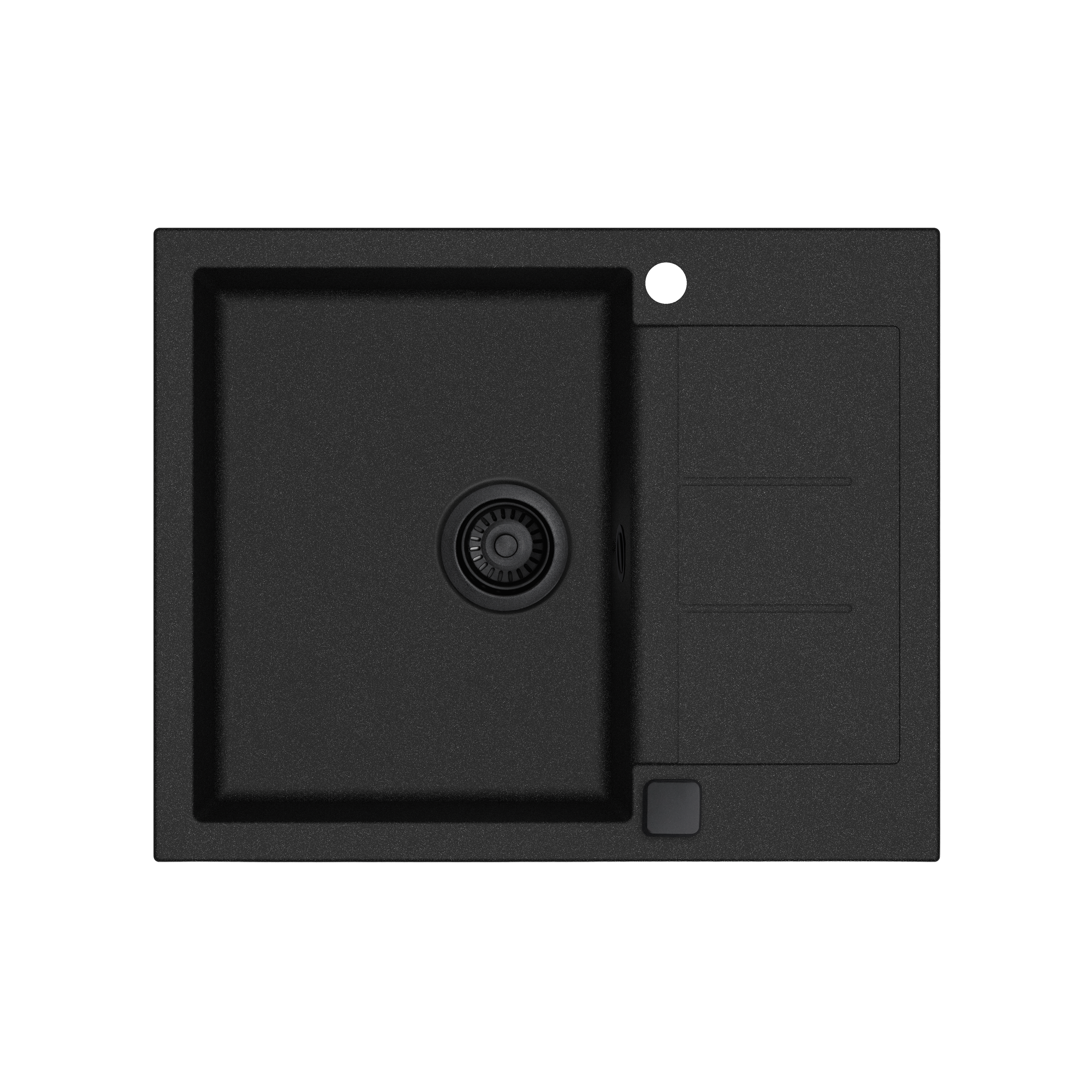 Saturn 620 komposit køkkenvask m/bakke, Sort m/sort afløb
