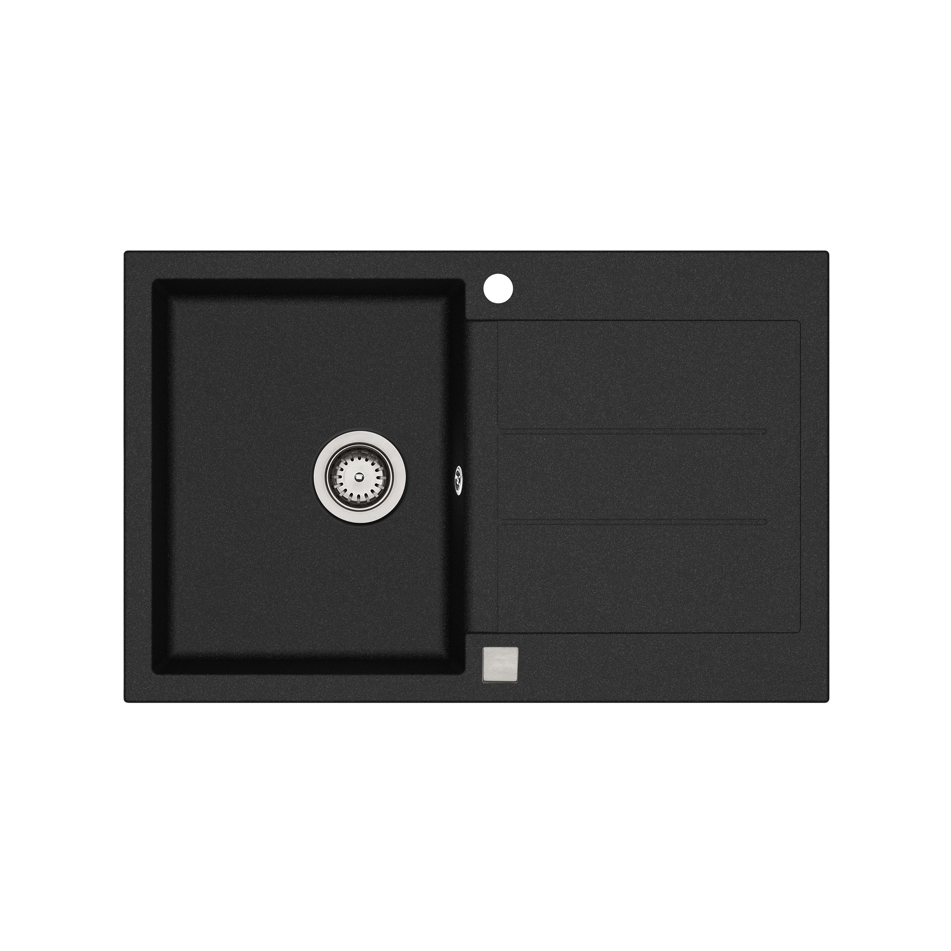 Saturn 780 komposit køkkenvask m/bakke, Sort m/krom afløb