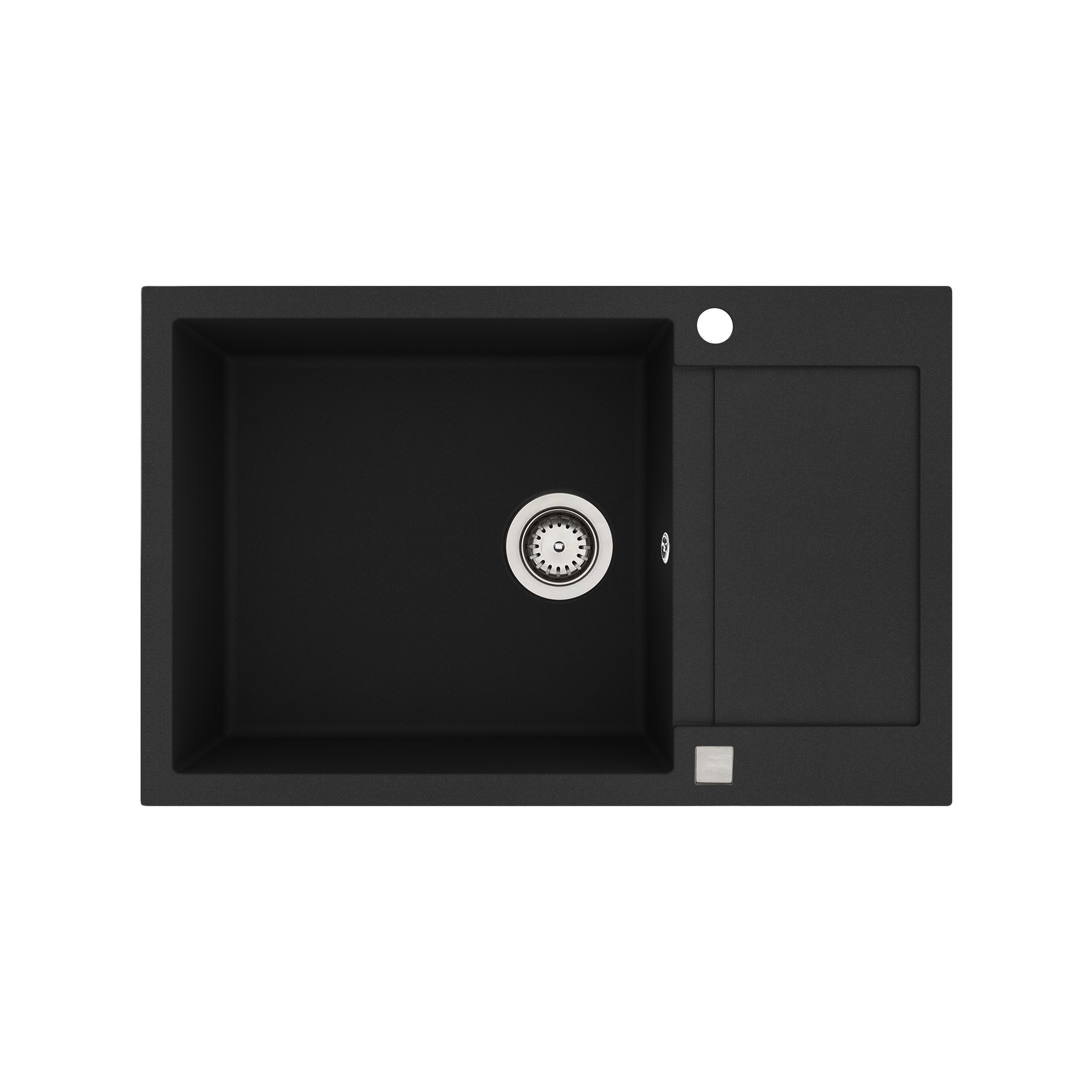 Saturn 790 komposit køkkenvask m/bakke, Sort m/krom afløb