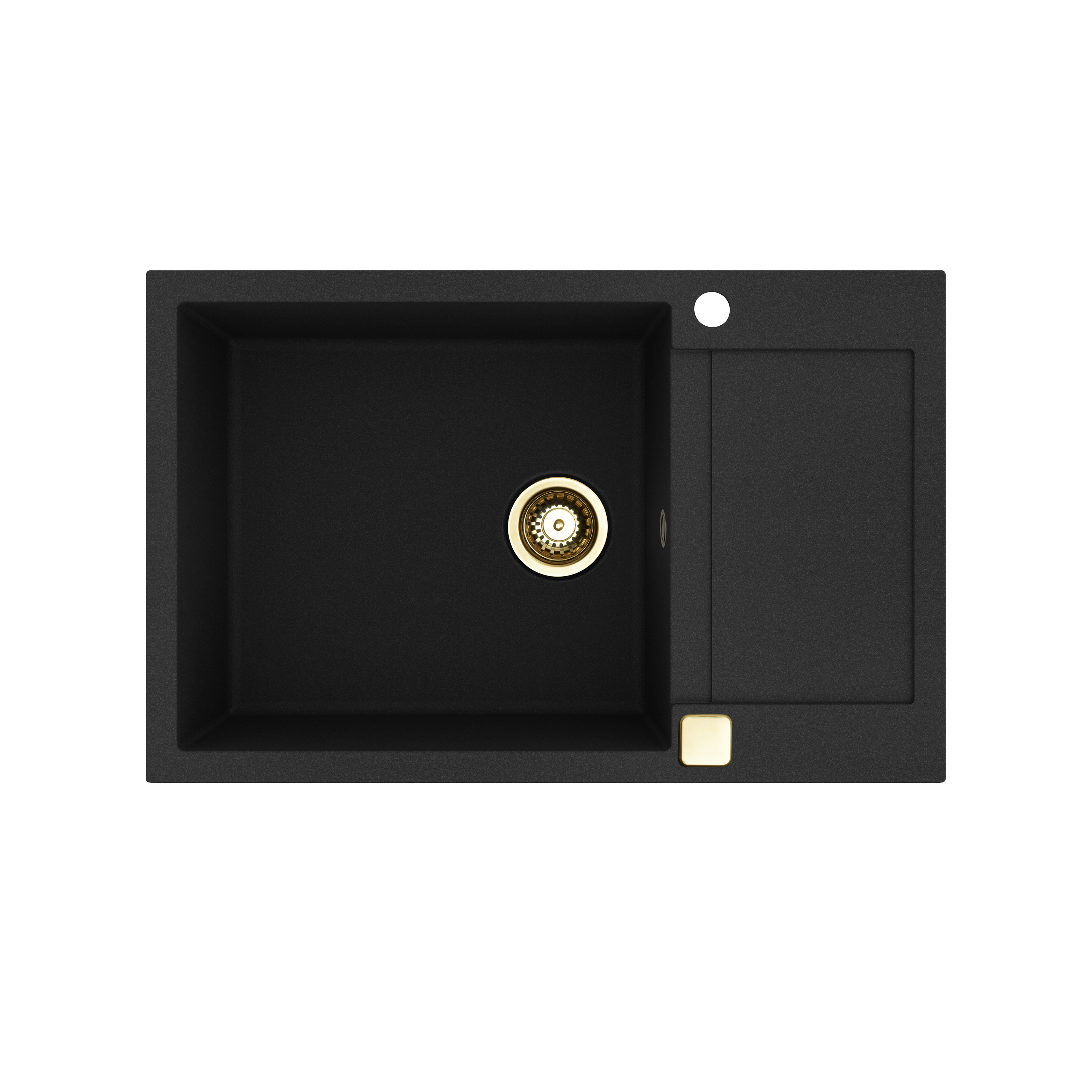 Saturn 790 komposit køkkenvask m/bakke, Sort m/PVD Messing afløb