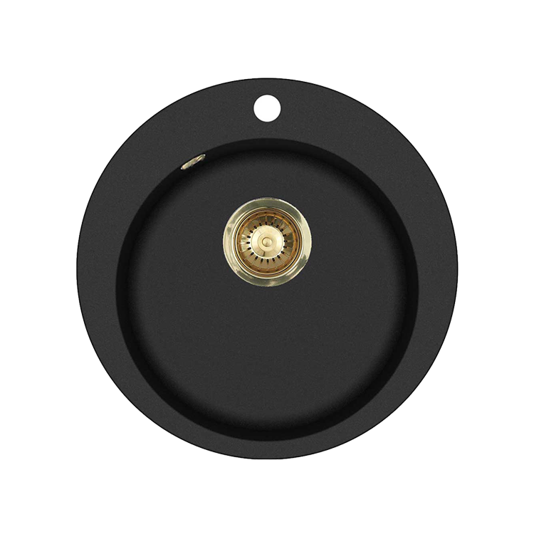 Saturn Rund komposit køkkenvask, Sort m/messing afløb