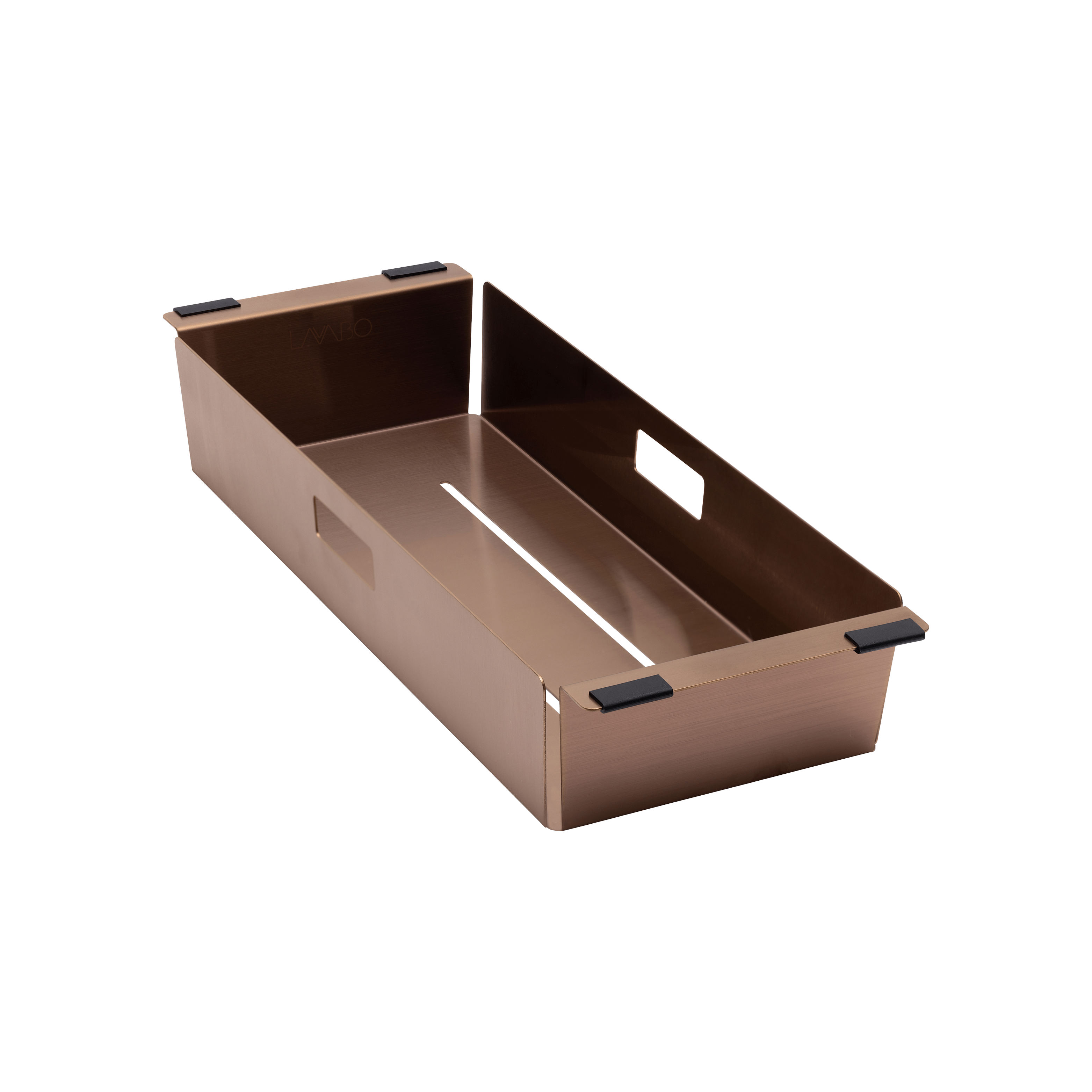 Fremstillet i 1,2 mm. rustfrit stål med PVD* overflade behandling i farven kobber.