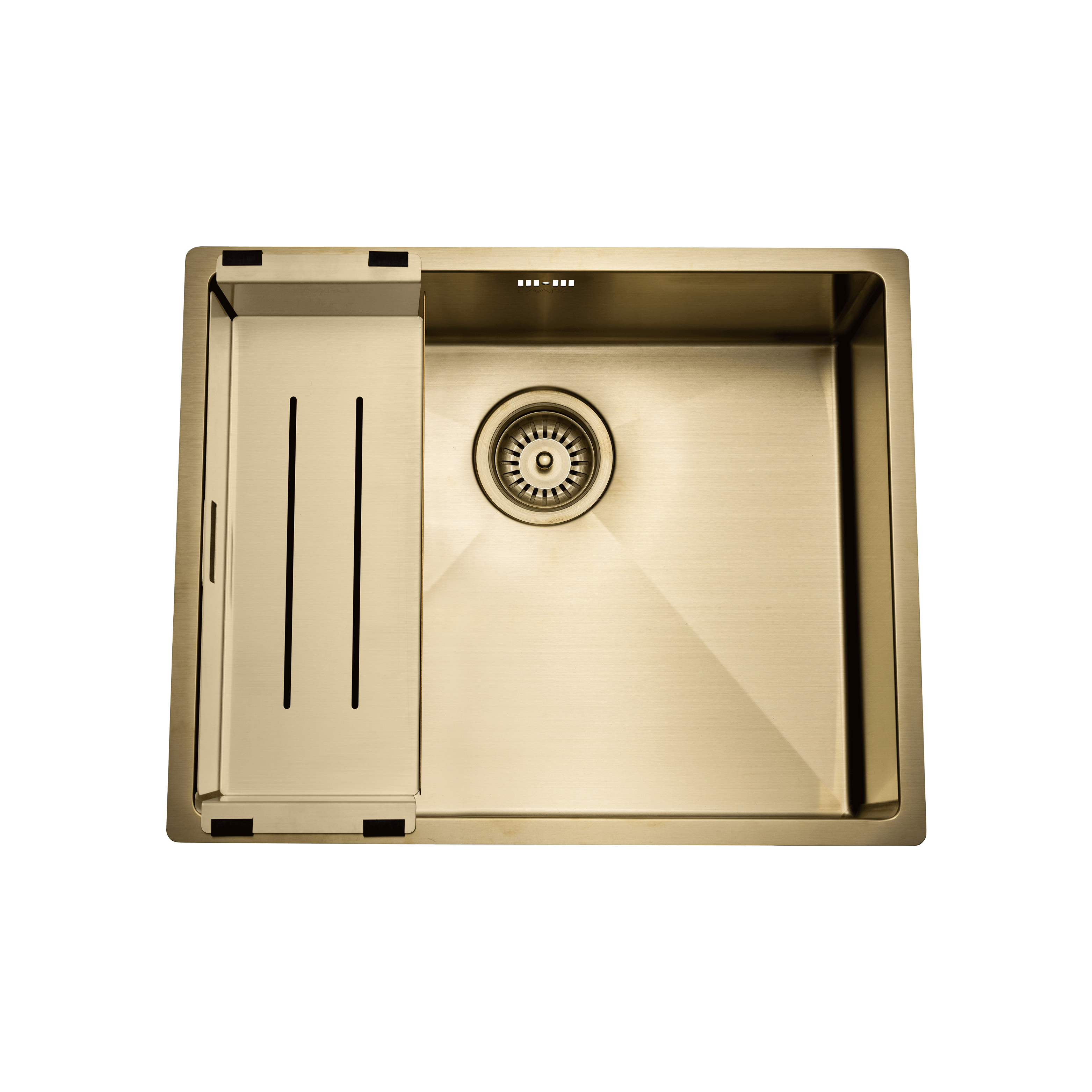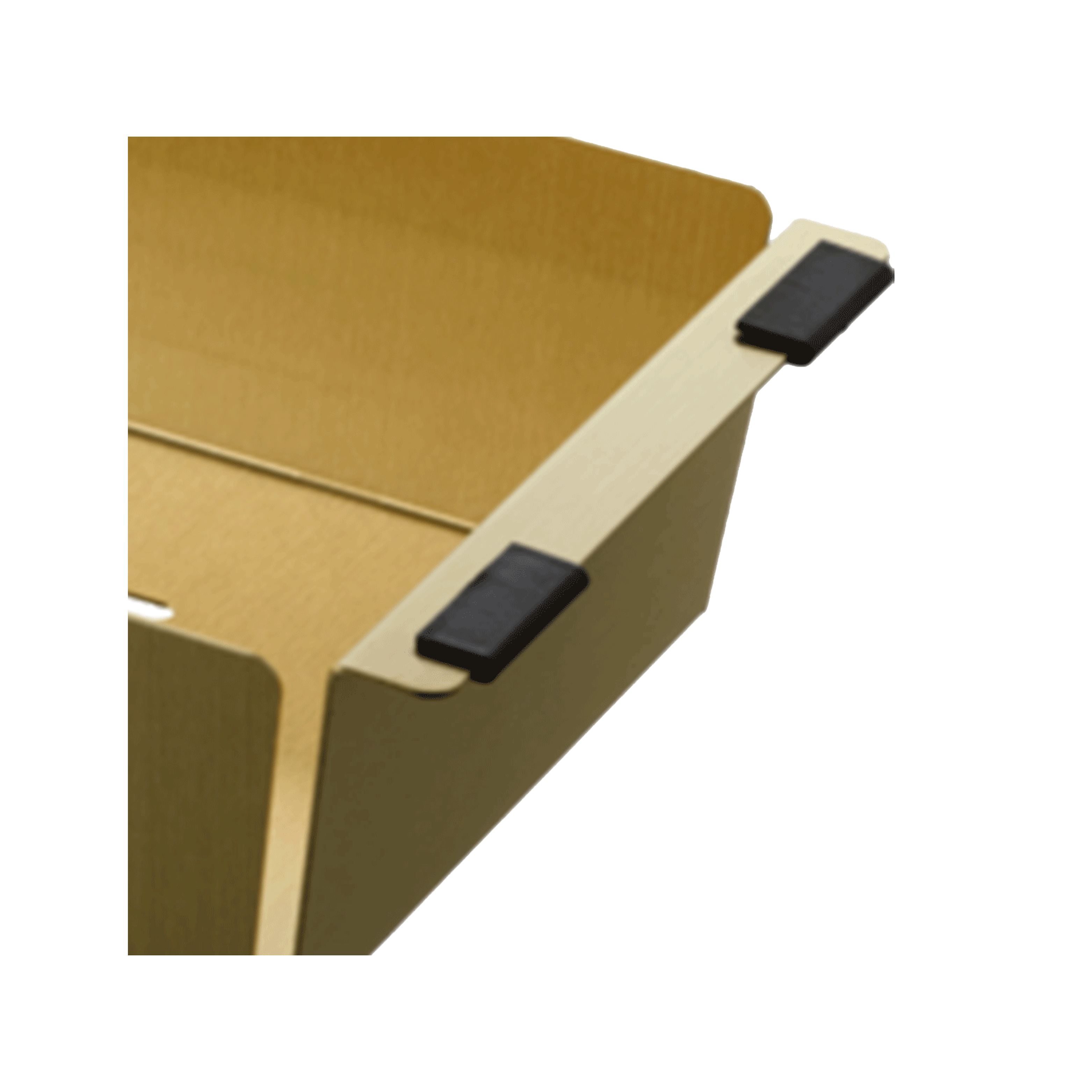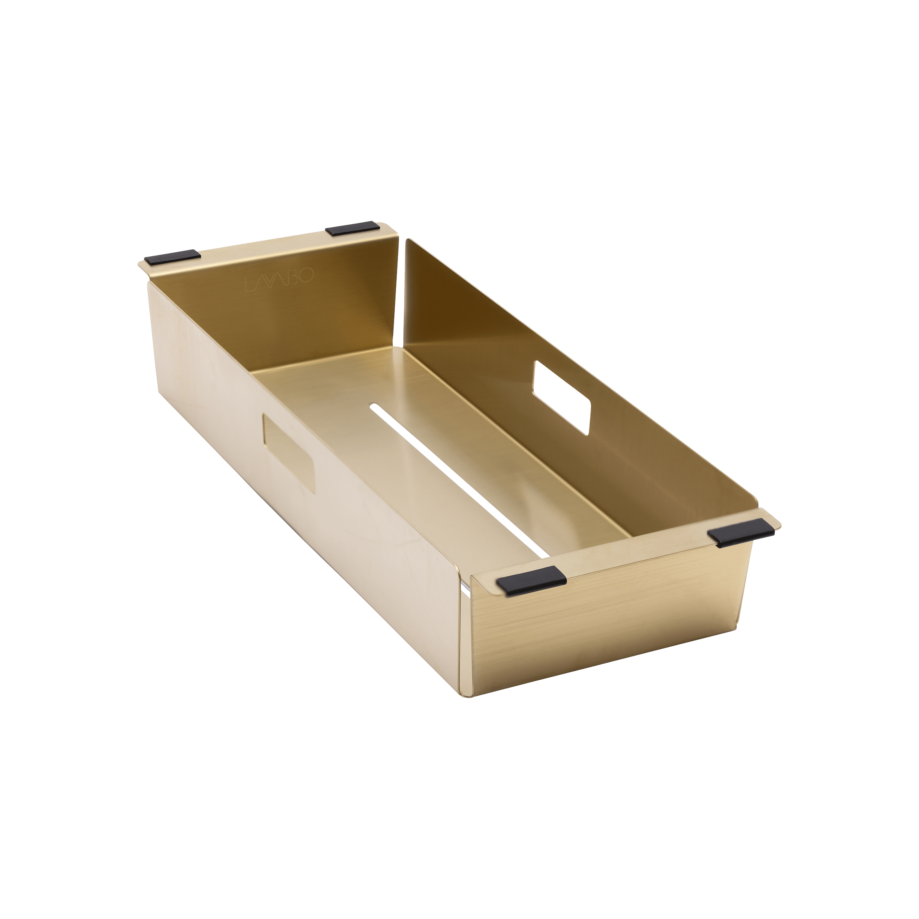 Fremstillet i 1,2 mm. rustfrit stål med PVD* overflade behandling i farven messing.