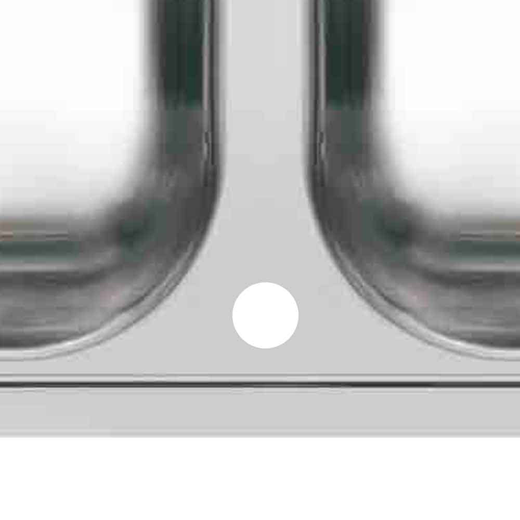 Udstansning af hanehul midtfor i nederste flange i rustfri stål- og komposit køkkenvaske.