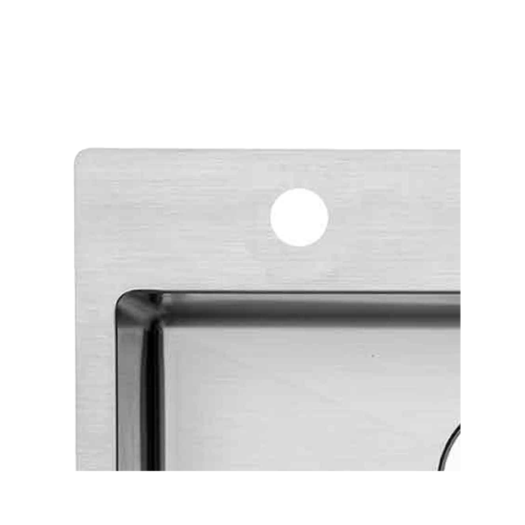 Udstansning af hanehul i venstre side i rustfri stål- og komposit køkkenvaske.